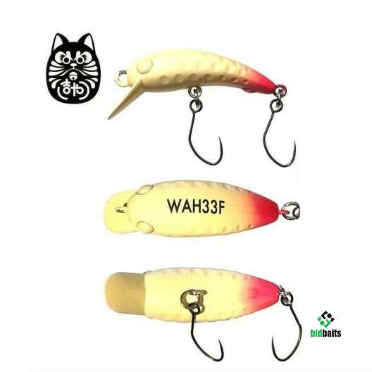 Lucky Craft Wah 33F - воблер для ловли прудовой форели в верхнем горизонте водоема. Главная отличительная черта - выраженная игра на медленных проводках, ключевой целью Wah 33F является ловля пассивной осторожной рыбы. Воблер оснащен двумя одинарными безбородыми крючками.