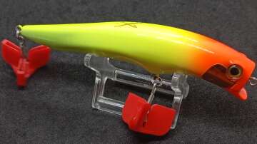 Воблер Exsence Agake 120F AR-C от японской компании Shimano – мелководный, плавающий воблер, заныривающий при проводке на глубину до 30см. Приманка создавалась для береговой ловли волчьего окуня. Имеет стойкое к морской воде и острым зубам хищника лакокрасочное покрытие. Фурнитура и крючки - морского класса. Благодаря тупоносой форме головы, при равномерной проводке активно виляет из стороны в сторону, переваливаясь с боку на бок. Воблер оснащен магнитной системой дальнего заброса и балансировки; обладает прекрасными полетными характеристиками (дальность заброса превышает дистанцию 50 метров).