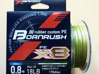 Bornrush PE X8 от YGK открывает новую страницу технологического развития в производстве восьмижильных шнуров. Основное достижение состоит в применении новой технологии плетения, повышающей плотность плетения. За счет этого шнур Bornrush стал более гладкий, и значительно менее растяжим, а это существенно повысило чувствительность. Так же в плетеном шнуре Bornrush PE X8 применяется новый состав пропитки - HST.WX, что позволило значительно улучшить абразивоустойчивость и сохранить мягкость плетеного шнура.