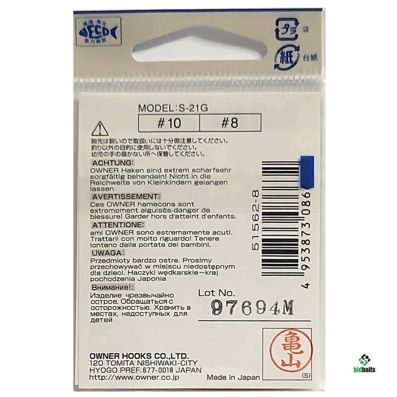 Крючки Owner S-21G рекомендована для оснащения различных типов блесен, в том числе и для отвесного блеснения.