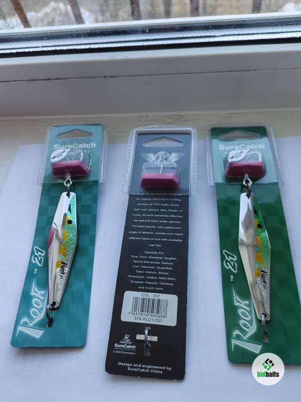 Отличные колебалки. Цена указана за одну штуку. Блесна SureCatch Rook специально разработана для ловли джиговой, для троллинга и спиннинговой рыбалки с берега, с лодки в озерах , реках в стоячей воде и на течении. Возможно использовать для морской рыбалки. Выпускается в широкой гамме цветов и размеров. Оснащена тройником MUSTAD в дюратиновой покрытии, пригодном для использования в соленой воде.