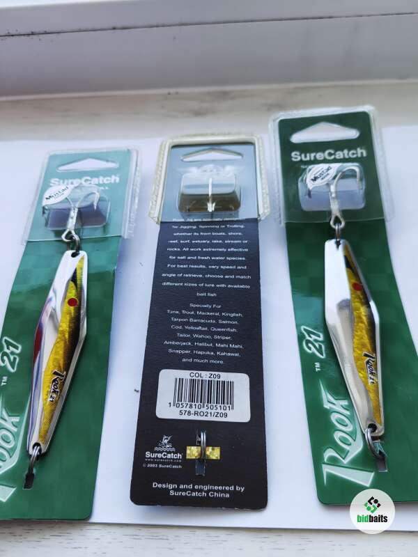 Отличные колебалки. Цена указана за одну штуку. Блесна SureCatch Rook специально разработана для ловли джиговой, для троллинга и спиннинговой рыбалки с берега, с лодки в озерах , реках в стоячей воде и на течении. Возможно использовать для морской рыбалки. Выпускается в широкой гамме цветов и размеров. Оснащена тройником MUSTAD в дюратиновой покрытии, пригодном для использования в соленой воде.