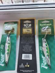 Отличные колебалки. Отлично работает как и по обычным хищника, так и по лососевым. Цена указана за одну штуку. Блесна SureCatch Rook специально разработана для ловли джиговой, для троллинга и спиннинговой рыбалки с берега, с лодки в озерах , реках в стоячей воде и на течении. Возможно использовать для морской рыбалки. Выпускается в широкой гамме цветов и размеров. Оснащена тройником MUSTAD в дюратиновой покрытии, пригодном для использования в соленой воде.