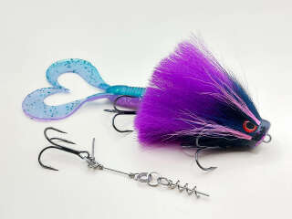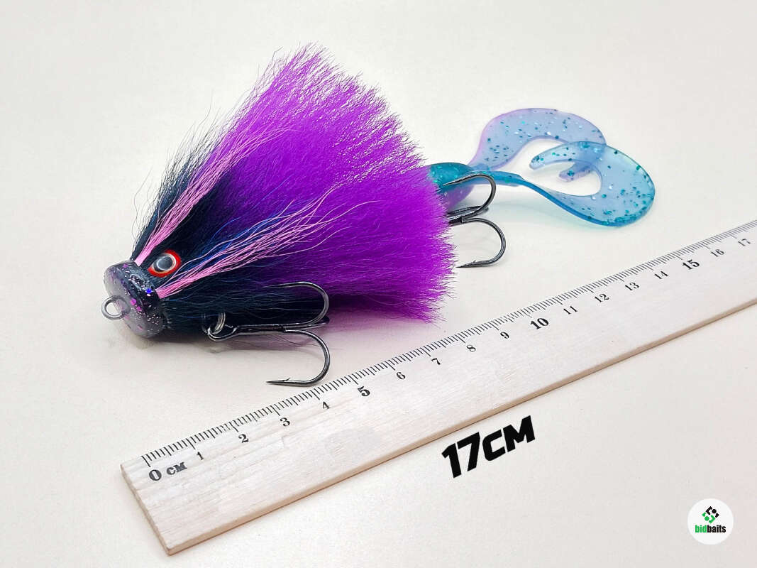 Голова мыши выполнена из натурального меха хвоста оленя - Bucktail с добавлением синтетического меха разных цветов). Мех имеет очень реалистичную игру в воде, дышит и создает пузыри воздуха, что сильно влияет на привлечение рыбы и лучшей видимости приманки при ловле с Паноптикс Panoptix. Стингер выполнен из нержавеющей проволоки и оснащен качественными корейскими крючками и фурнитурой. Хвост приманки изготовлен из съедобного силикона.