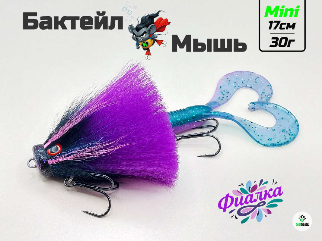 Бактейл мышь Mini на щуку цвет "Фиалка" ручной работы