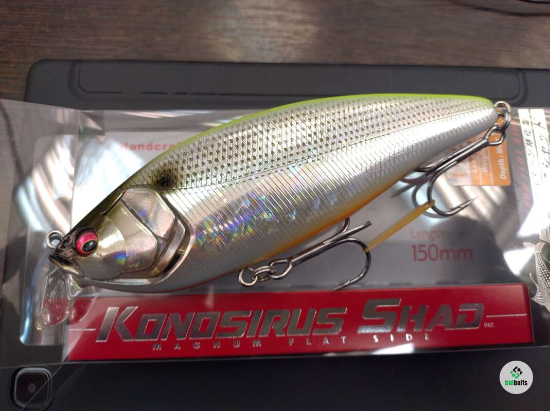 Megabass Konosirus Shad отличается высокой спинкой и максимально сплющенными боками. Такая геометрия дает возможность проводить его в быстром темпе на водоемах с сильным течением, поэтому этот вариант считается одним из лучших для ловли лососевых. Не пропустят данный аппетитный воблер и щука с судаком.