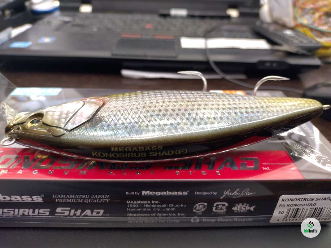 Megabass Konosirus Shad отличается высокой спинкой и максимально сплющенными боками. Такая геометрия дает возможность проводить его в быстром темпе на водоемах с сильным течением, поэтому этот вариант считается одним из лучших для ловли лососевых. Не пропустят данный аппетитный воблер и щука с судаком.