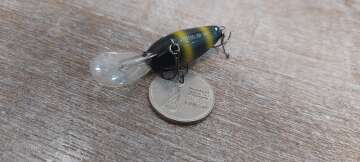 Состояние на фото - в этом случае затрудняюсь дать объективную оценку воблеру, как правило следы использования ярко выражены, может быть не всё хорошо с лкп,но видимых дефектов по функционалу не обнаружено