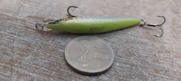 Состояние на фото - в этом случае затрудняюсь дать объективную оценку воблеру, как правило следы использования ярко выражены, может быть не всё хорошо с лкп,но видимых дефектов по функционалу не обнаружено