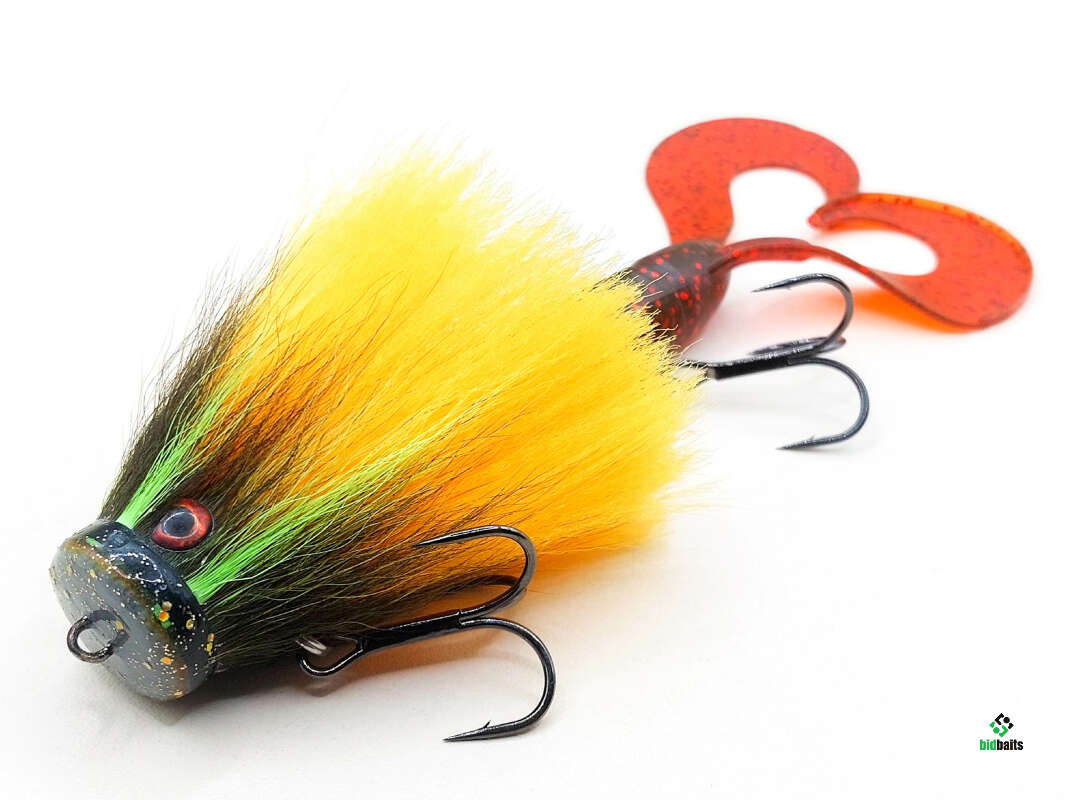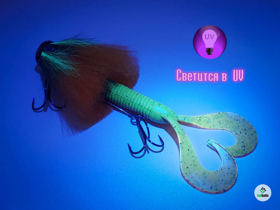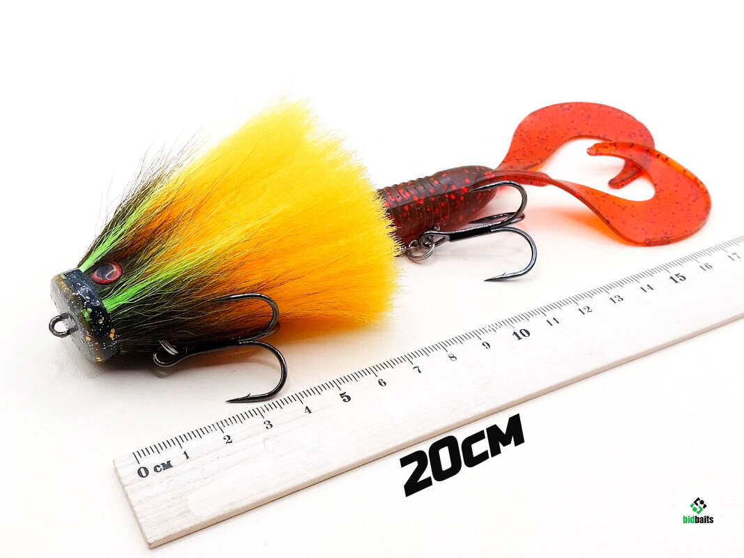 Голова мыши выполнена из натурального меха хвоста оленя - Bucktail с добавлением синтетического меха разных цветов. Мех имеет очень реалистичную игру в воде, дышит и создает пузыри воздуха, что сильно влияет на привлечение рыбы и лучшей видимости приманки при ловле с Паноптикс Panoptix. Стингер выполнен из нержавеющей проволоки и оснащен качественными корейскими крючками и фурнитурой. Хвост приманки изготовлен из съедобного силикона.