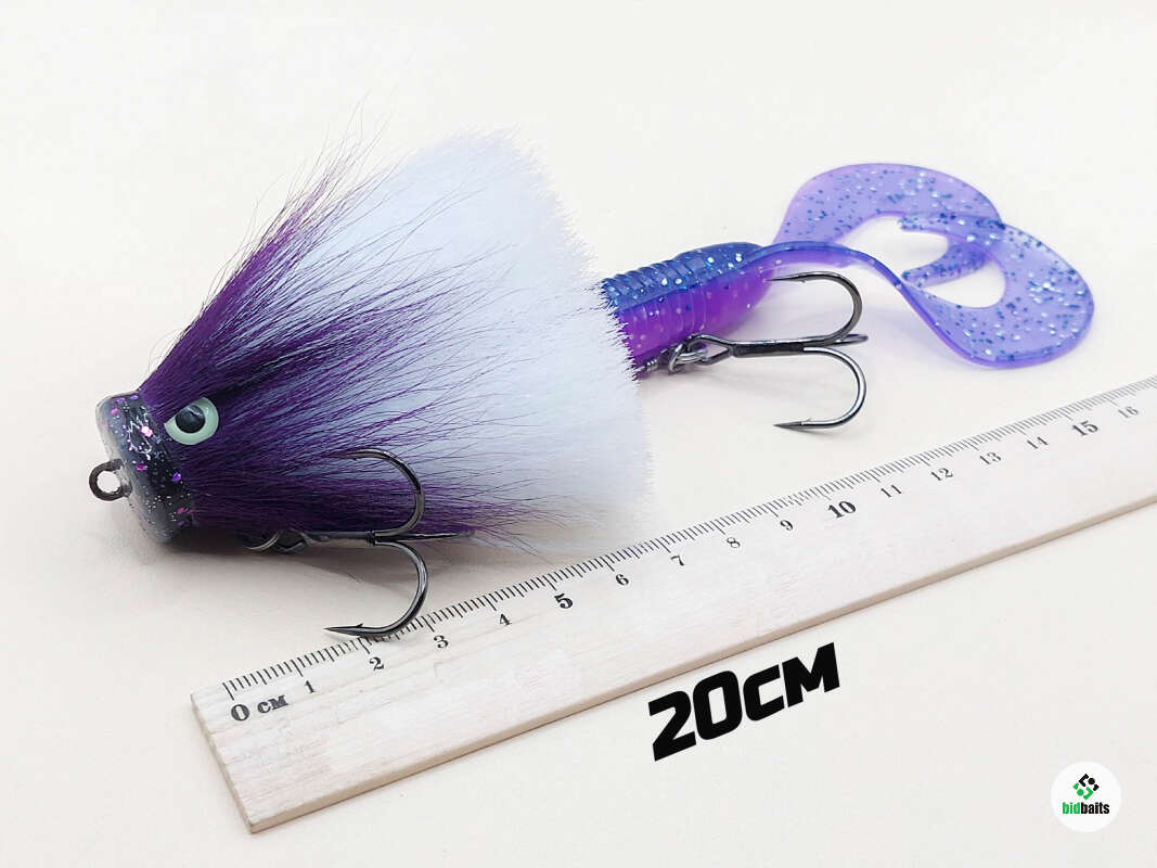 Голова мыши выполнена из натурального меха хвоста оленя - Bucktail с добавлением синтетического меха разных цветов. Мех имеет очень реалистичную игру в воде, дышит и создает пузыри воздуха, что сильно влияет на привлечение рыбы и лучшей видимости приманки при ловле с Паноптикс Panoptix. Стингер выполнен из нержавеющей проволоки и оснащен качественными корейскими крючками и фурнитурой. Хвост приманки изготовлен из съедобного силикона.