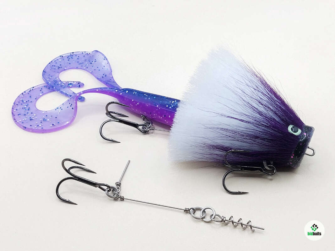 Голова мыши выполнена из натурального меха хвоста оленя - Bucktail с добавлением синтетического меха разных цветов. Мех имеет очень реалистичную игру в воде, дышит и создает пузыри воздуха, что сильно влияет на привлечение рыбы и лучшей видимости приманки при ловле с Паноптикс Panoptix. Стингер выполнен из нержавеющей проволоки и оснащен качественными корейскими крючками и фурнитурой. Хвост приманки изготовлен из съедобного силикона.