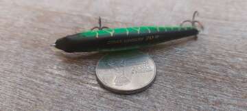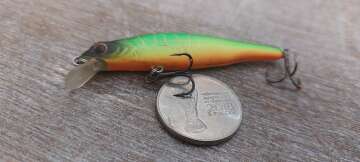 Состояние на фото - в этом случае затрудняюсь дать объективную оценку воблеру, как правило следы использования ярко выражены, может быть не всё хорошо с лкп,но видимых дефектов по функционалу не обнаружено