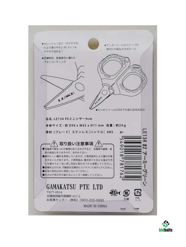 ножницы GAMAKATSU LE134 Luxe PE Mini Scissors 9cm #Army Green
