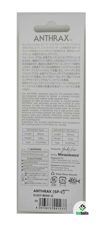 воблер MEGABASS Anthrax (SP-C) 83mm 10.6g#Elegy Bone II