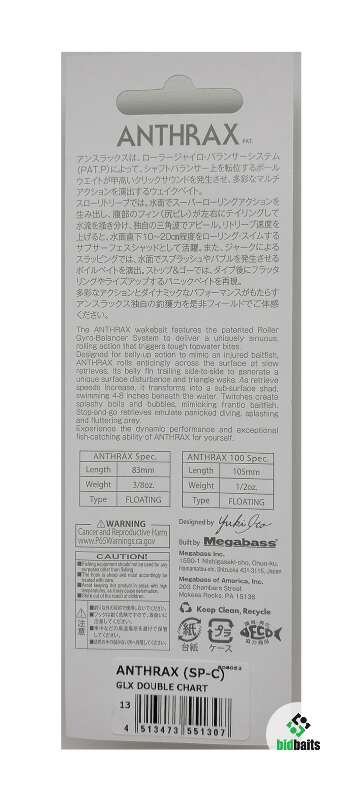 воблер MEGABASS Anthrax (SP-C) 83mm 10.6g#GLX Double Chart