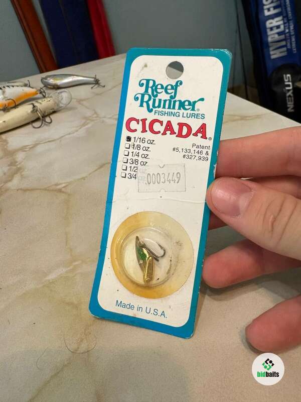 Оригинальная блесна-цикада Reef Runner Cicada весом 1/16 oz в цвете Gold/Green. Настоящее качество из США — ещё тех времён, когда приманки делались «на совесть».