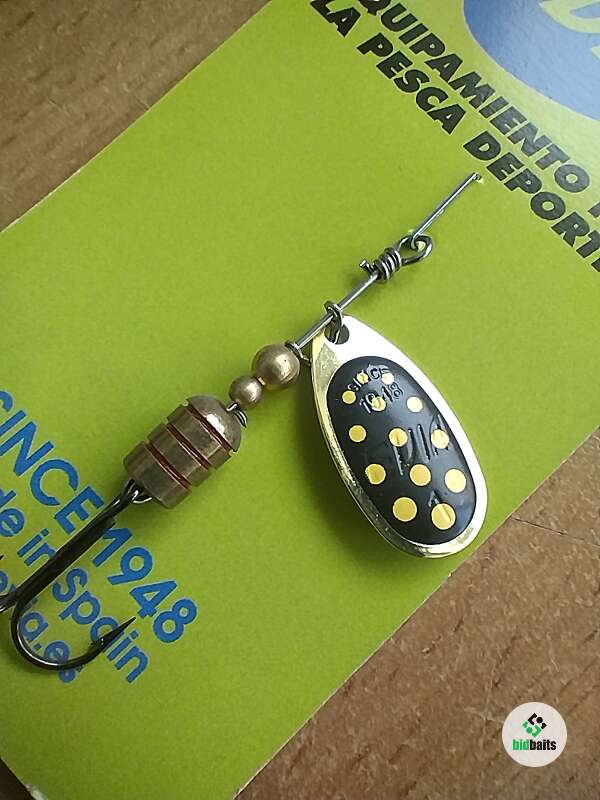 Блесна вращающаяся Evia Испания, золотой лепесток с черным покрытием и желтыми точками, №1, вес 3 гр