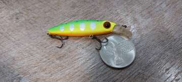 Состояние на фото - в этом случае затрудняюсь дать объективную оценку воблеру, как правило следы использования ярко выражены, может быть не всё хорошо с лкп,но видимых дефектов по функционалу не обнаружено