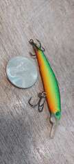 Состояние на фото - в этом случае затрудняюсь дать объективную оценку воблеру, как правило следы использования ярко выражены, может быть не всё хорошо с лкп,но видимых дефектов по функционалу не обнаружено