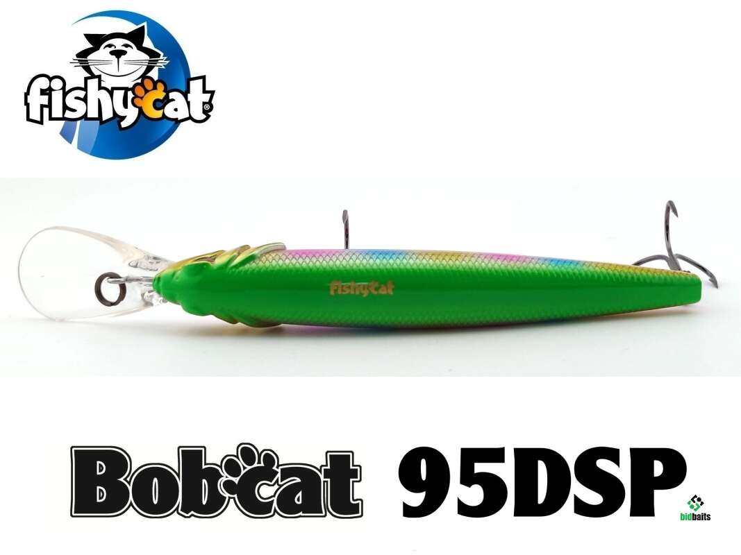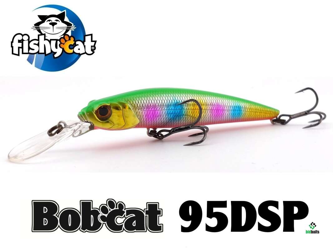 Воблер Fishycat BOBCAT 95DSP снабжен увеличенной лопастью, что позволяет заныривать на большую глубину. Имеет нейтральную плавучесть и при остановке остается на достигнутой глубине. Прекрасно отзывается на рывковую проводку, но и при равномерном ведении имеет собственную игру.