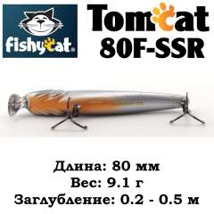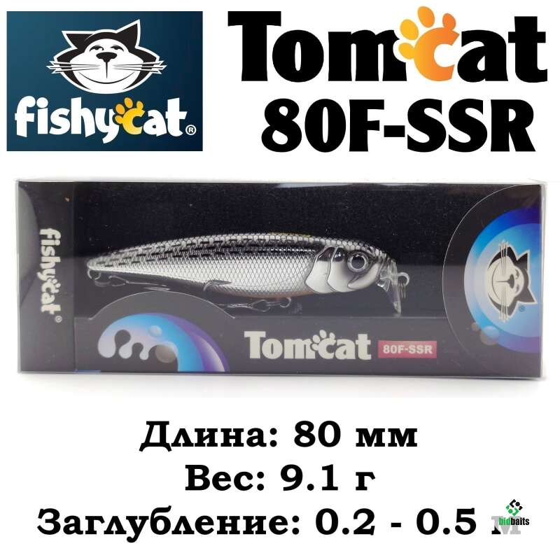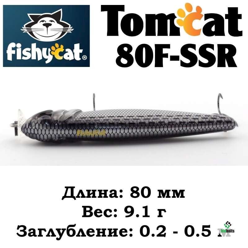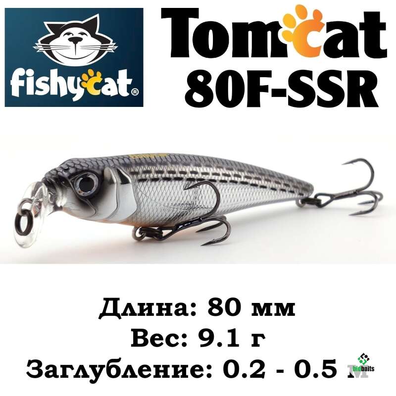 - TOMCAT 80F-SSR – самый мелководный воблер в этой серии приманок. Мелкие, заросшие травой и закоряженные водоемы это его стихия.