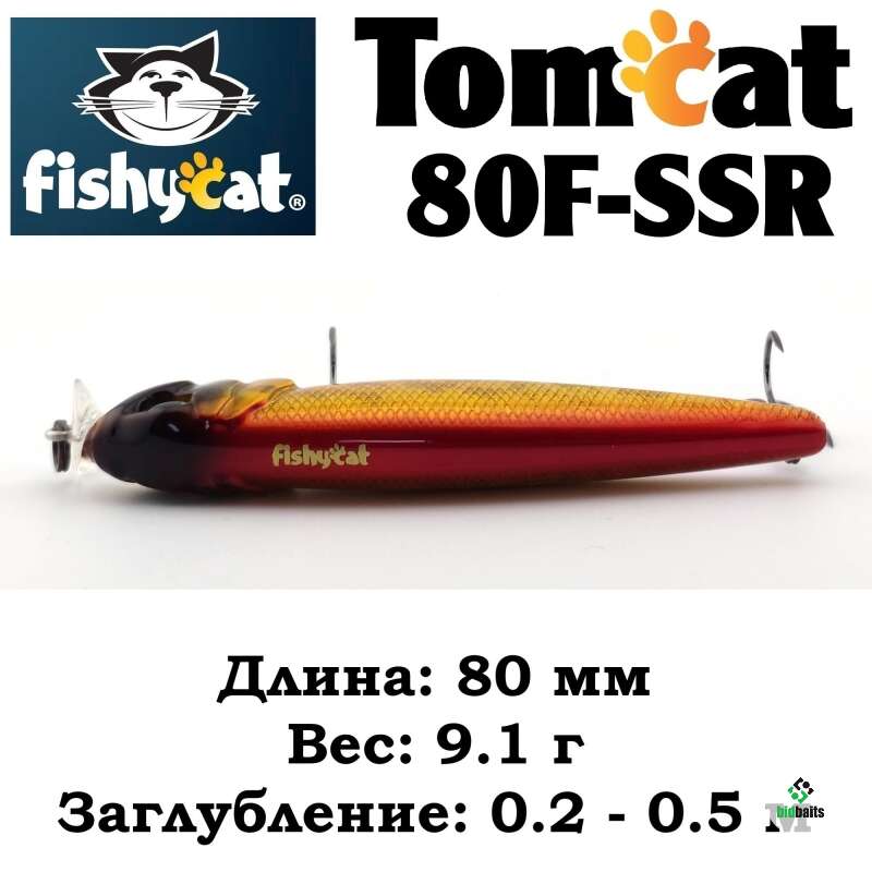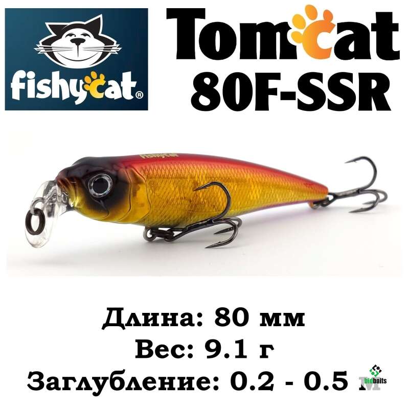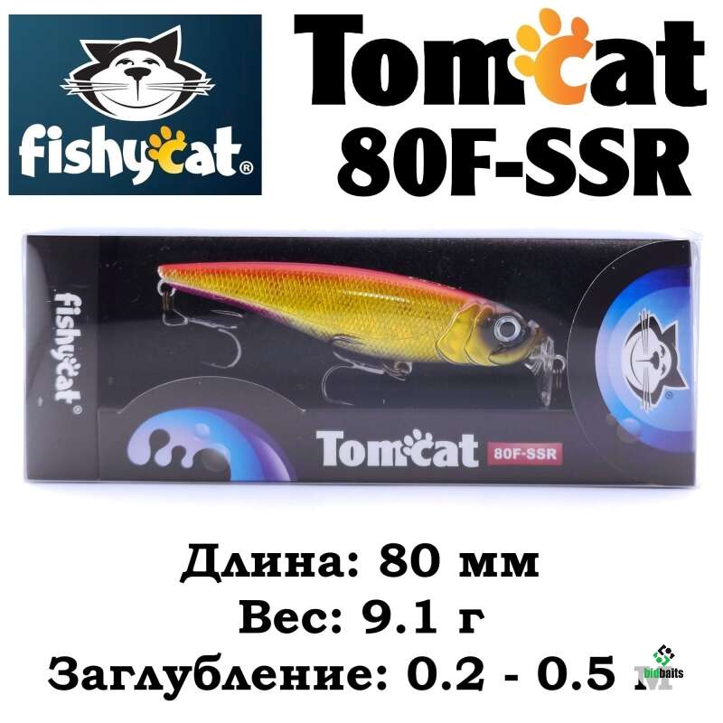 - TOMCAT 80F-SSR – самый мелководный воблер в этой серии приманок. Мелкие, заросшие травой и закоряженные водоемы это его стихия.