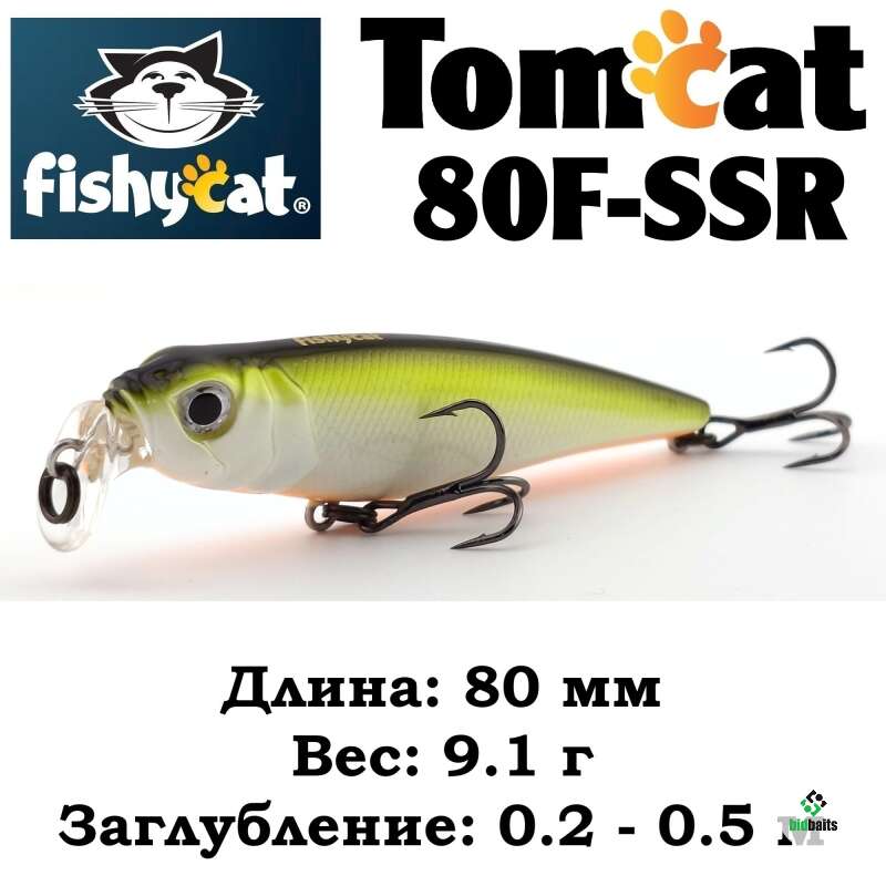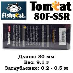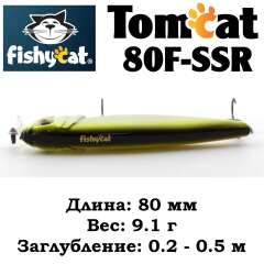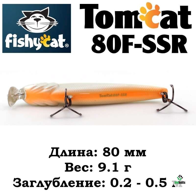 - TOMCAT 80F-SSR – самый мелководный воблер в этой серии приманок. Мелкие, заросшие травой и закоряженные водоемы это его стихия.