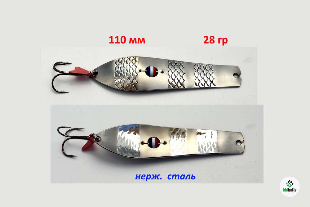 Блесна типа финской " Professor" или советской " Гешель" для работы с анимацией. Хаотичные движения, имитирующие раненую или испуганную рыбешку. На паузе сыпется с уходом назад. Возможно крепление с любой стороны.