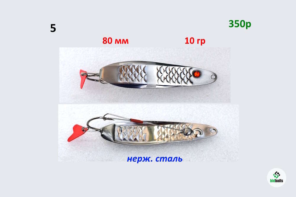 Блесна изготовлена из нерж. стали. Впаянный крючек из разделенного тройника. Специальный одинарный ус из пружинной нерж. проволоки надежно защищает крючек от любых препятствий. Впаянное заводное колечко позволяет устанавливать хвостик или флат с твистером. Движение змейкой с подьемом к поверхности, что позволяет делать длительные паузы.