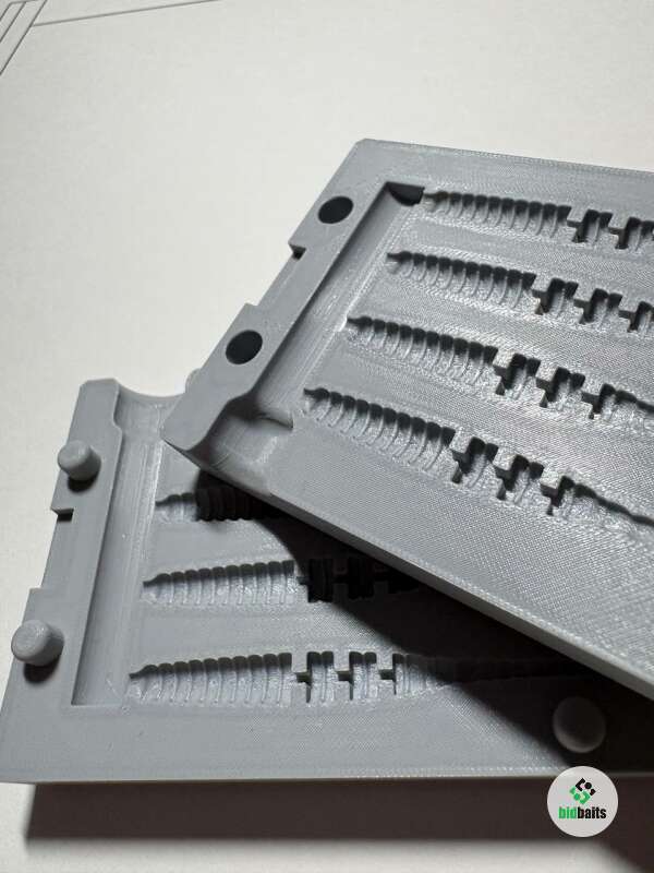 Форма рассчитана на 4 приманки размером 2 дюйма за одну заливку, что удобно для быстрого и аккуратного производства.