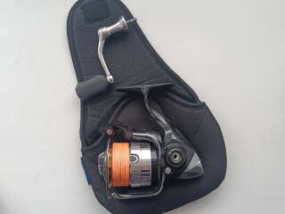 Полный комплект - коробка, сама катушка + ручка + более дорогое исполнение мягкого чехла ( от более дорогой модели Shimano. Стандартный чехол был серого цвета и потоньше), шайбочки, наклейка со шпули.