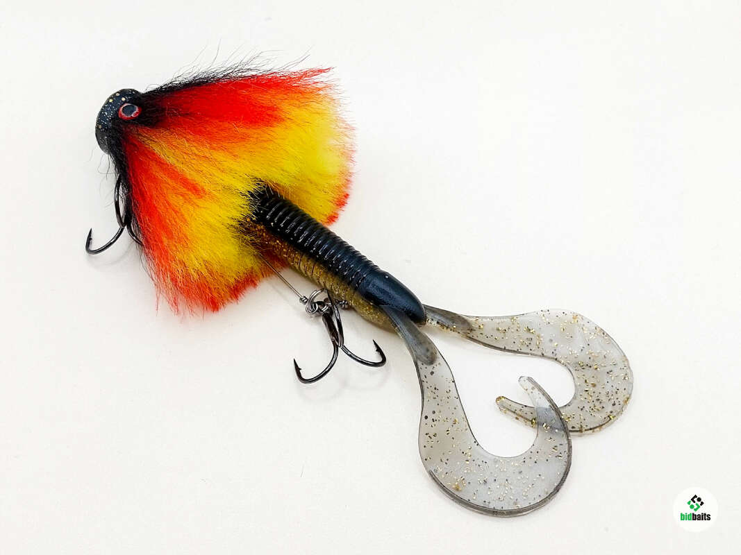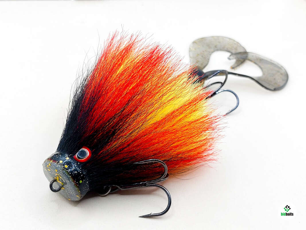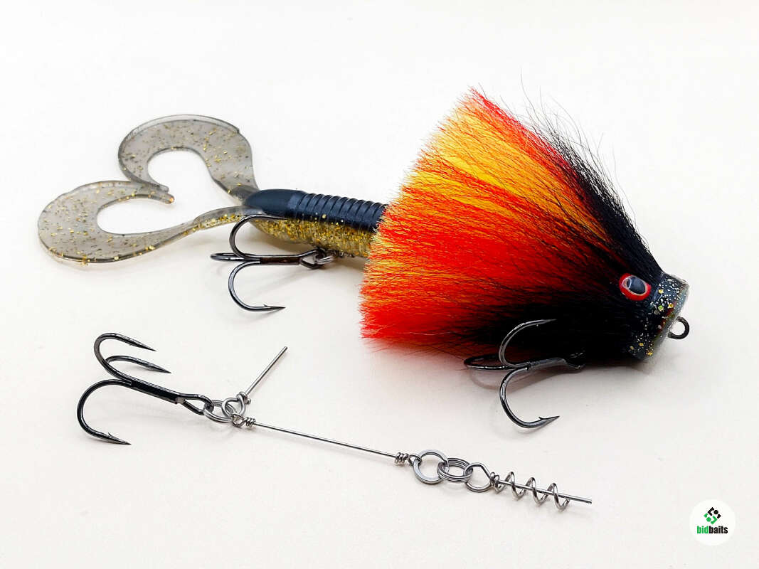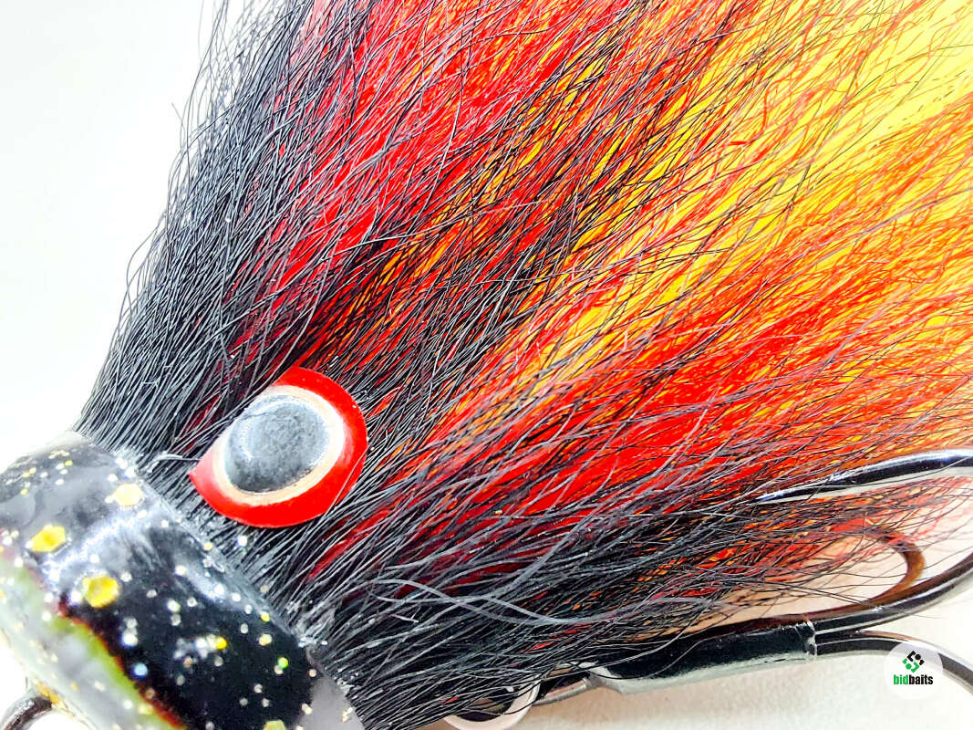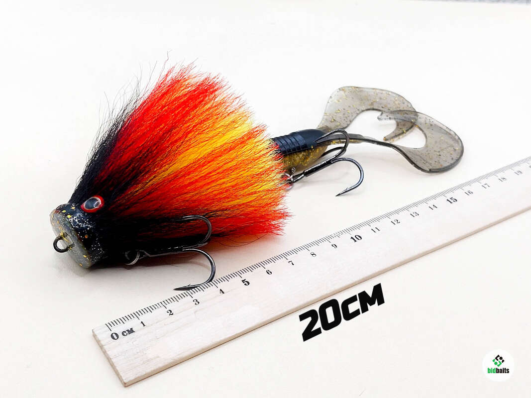 Голова мыши выполнена из натурального меха хвоста оленя - Bucktail с добавлением синтетического меха разных цветов. Мех имеет очень реалистичную игру в воде, дышит и создает пузыри воздуха, что сильно влияет на привлечение рыбы и лучшей видимости приманки при ловле с Паноптикс Panoptix. Стингер выполнен из нержавеющей проволоки и оснащен качественными корейскими крючками и фурнитурой. Хвост приманки изготовлен из съедобного силикона.