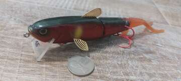 Состояние на фото - в этом случае затрудняюсь дать объективную оценку воблеру, как правило следы использования ярко выражены, может быть не всё хорошо с лкп,но видимых дефектов по функционалу не обнаружено
