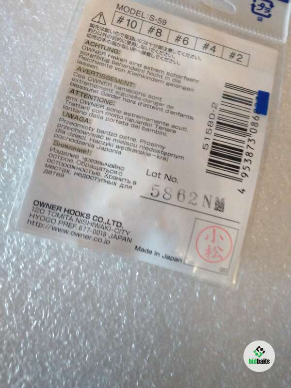 Крючки:OWNER.(SIZE N:2.S-59.(В упаковке 6 шт.). Made in Japan.