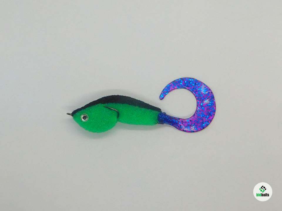 Гибридная поролоновая приманка. Очень мягкий мелкопористый поролон на двойнике Eagle Claw (загнутое жало) №2, силиконовый хвост Action Plastics. Двойник слегка прижат к телу, что дает преимущество для ловли в корягах и не мешает реализации поклевок. Поролон живой, не печеный. Полностью ручная работа. Длина 9см.