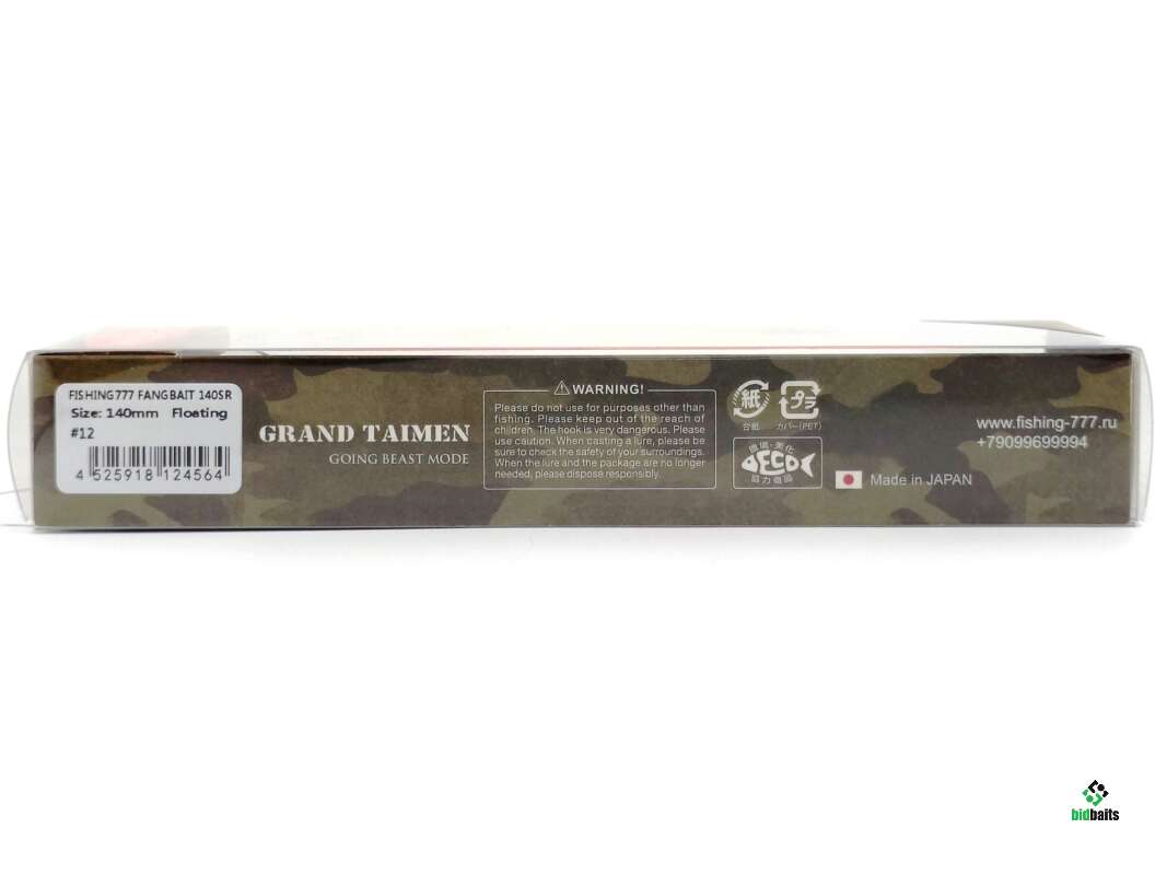 Воблер Fangbait & Fishing-777 - настоящая легенда для ловли крупной щуки и тайменя. Он оснащен сквозным каркасом из проволоки диаметром 1.5 мм и штырями-фиксаторами из нержавеющей стали, что не допускает потери целостность при работе с тяжелой добычей, например тайменем. Корпус изготовлен из прочного пластика с увеличенной толщиной стенок, поэтому он способен выдержать поимку любой рыбы трофейных размеров. Специально по заказу компании Рыбалка-777 воблер был оснащен шумовой капсулой и изменена система балансировки для более выразительного роллинга. Благодаря этим доработкам, воблер стал более уловистым и привлекательным для рыбы даже на равномерной проводке. Воблер отлично работает в различные условия ловли как в спокойной воде, так и на течение.