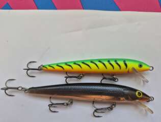 F11 Матт tiger покупал в 2014 г., на лопатке "rapala floating". Длина 105 мм, вес 7 г.