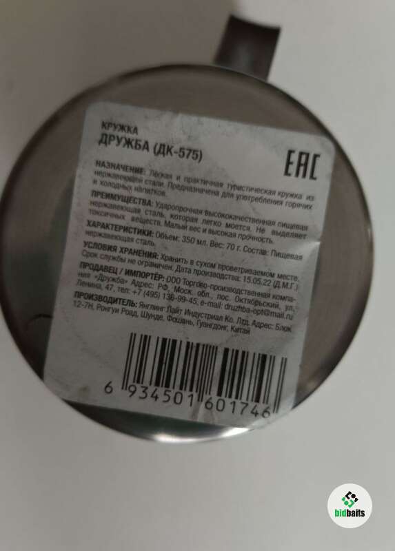Кружка 350 мл. нержавейка пищевая