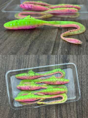 Уникальный виброхвост с прогонистым телом и играющим хвостом. Собственное производство. Отлично работает по судаку, окуню, щуке. Доставка возможна 5post, ozon, Yandex, cdek.