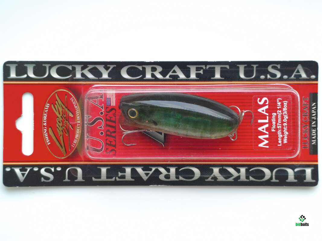 Эту уникальную приманку можно отнести сразу к нескольким классам. В первую очередь, Lucky Craft Malas - это SSR воблер. На равномерной проводке он заглубляется максимум на 20 сантиметров, при этом активно вихляя из стороны в сторону. Соответственно, чем ниже скорость подмотки лески, тем выше к поверхности будет идти приманка, оставляя за собой «усы». Но стоит начать совершать рывки удилищем, как Malas из воблера превращается в поппер, создавая характерное бульканье и разбрызгивая воду. Щука и окунь великолепно ловятся на этого малыша на мелководных участках водоемов, заросших травой.