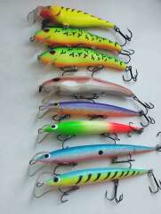 В моей коллекции довольно много воблеров для троллинга, а также для твичинга. Много разных цветов и моделей на любой сезон, в любую погоду и под разную рыбу. Помогу собрать ваш первый комлект воблеров под определённую рыбу).