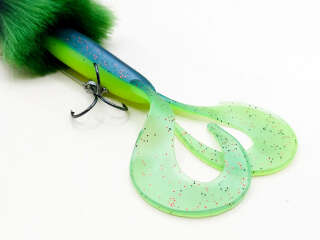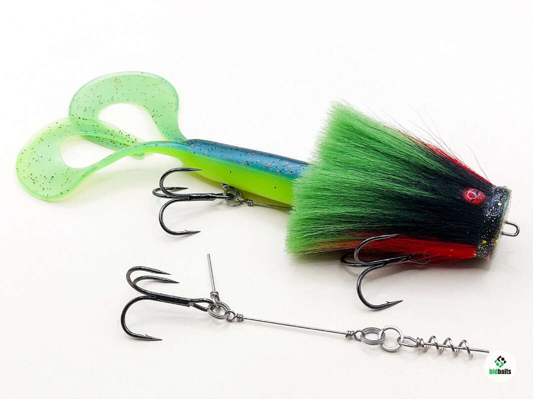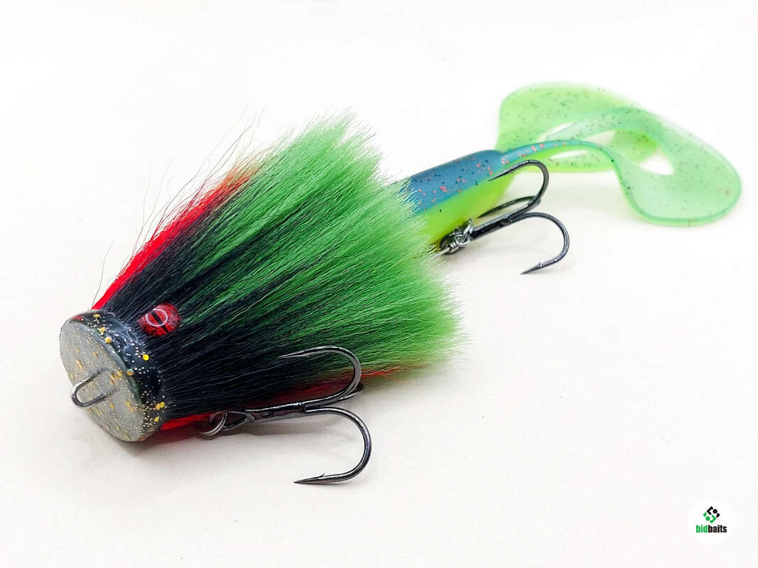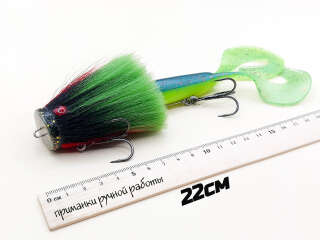 Голова мыши выполнена из натурального меха хвоста оленя - Bucktail с добавлением синтетического меха разных цветов. Мех имеет очень реалистичную игру в воде, дышит и создает пузыри воздуха, что сильно влияет на привлечение рыбы и лучшей видимости приманки при ловле с Паноптикс Panoptix. Стингер выполнен из нержавеющей проволоки и оснащен качественными корейскими крючками и фурнитурой. Хвост приманки изготовлен из съедобного силикона.