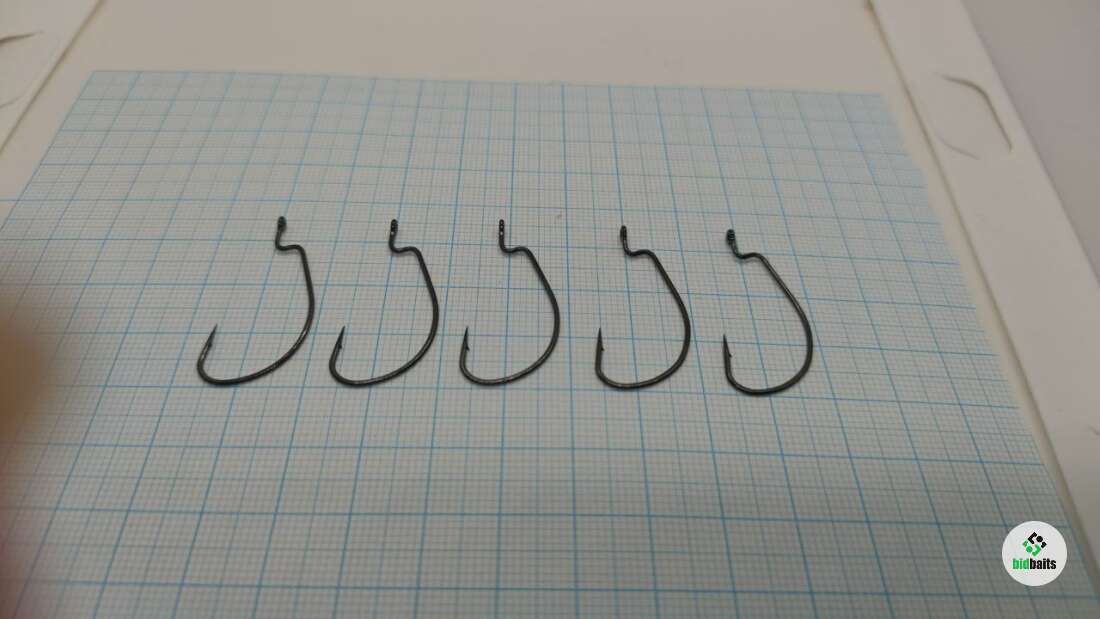 Закруглённый, немного скошенный загиб и достаточно короткое цевьё. Способствуют надёжному зацеплению рыбы.