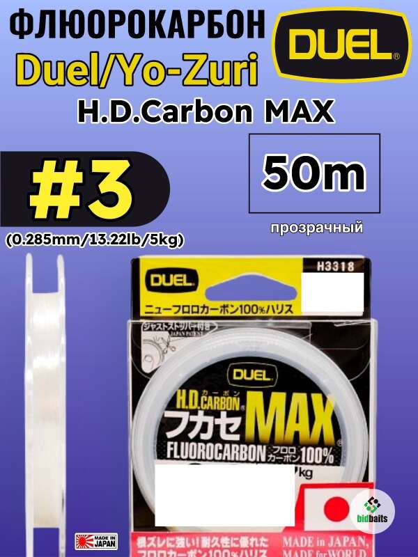 Леска для рыбалки флюорокарбоновая Duel/Yo-Zuri H.D.Carbon MAX 50m #3 (0.285mm/13.22lb/5kg)
