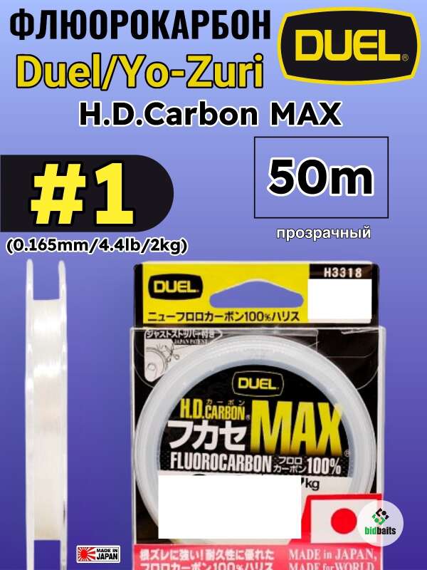 Леска для рыбалки флюорокарбоновая Duel/Yo-Zuri H.D.Carbon MAX 50m #1 (0.165mm/4.4lb/2kg)