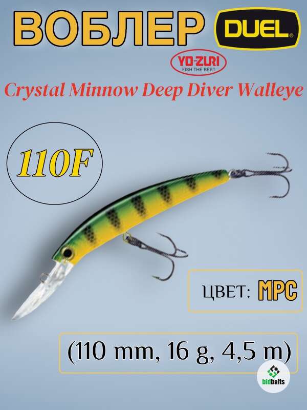Воблер Duel/Yo-Zuri Crystal Minnow Deep Diver Walleye 110F (110 mm,16 g, 4.5 m) MPC
