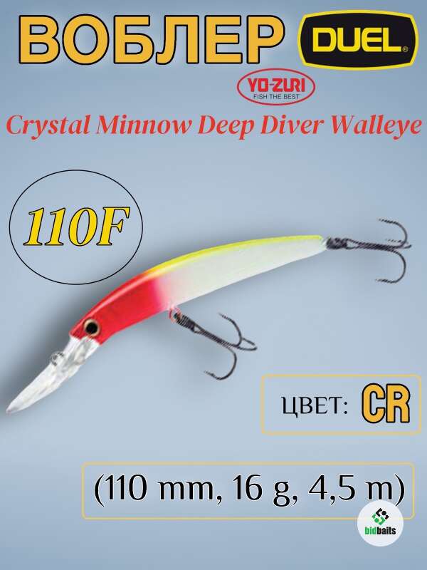 Воблер Duel/Yo-Zuri Crystal Minnow Deep Diver Walleye 110F (110 mm,16 g, 4.5 m) CR
