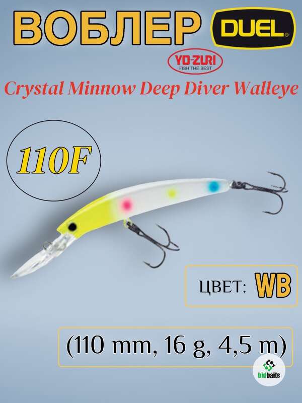 Воблер Duel/Yo-Zuri Crystal Minnow Deep Diver Walleye 110F (110 mm,16 g, 4.5 m) WB