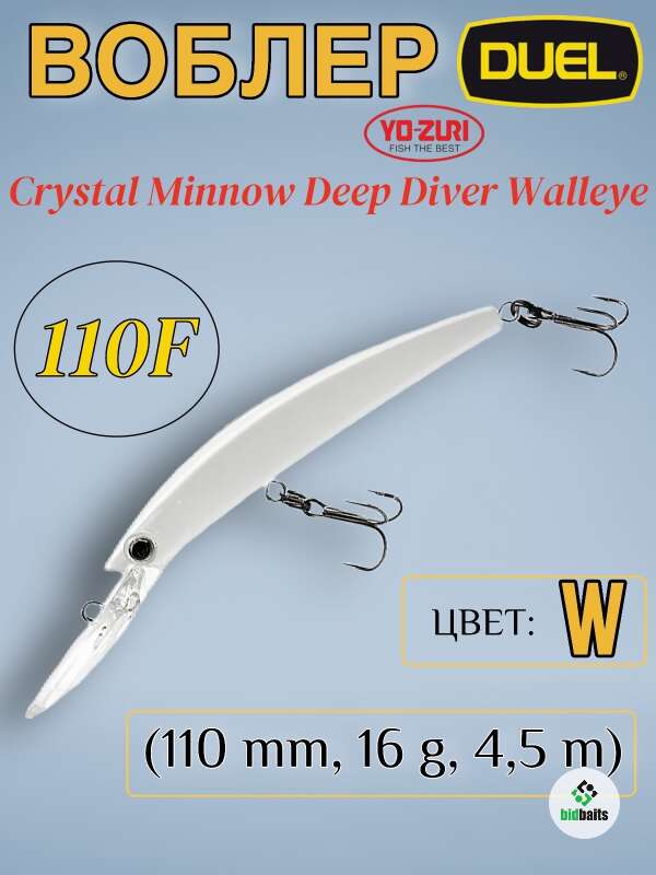 Воблер Duel/Yo-Zuri Crystal Minnow Deep Diver Walleye 110F (110 mm,16 g, 4.5 m) W